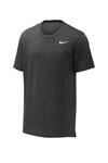 We're proud to offer this direct-from-retail Nike style, while supplies last. This isn't your ordinary tee. This elevated, sophisticated heathered top is engineered to keep you cool with sweat-wicking mesh fabric. Its functional design includes side seam vents that help you move freely in the gym or on the field. Rolled-forward shoulder seams allow full range of motion. A drop tail hem gives extra coverage. A contrast heat transfer Swoosh design trademark is on the left chest. Made of 4.5-ounce, 76/12/12 recycled polyester/rayon/cotton Dri-FIT fabric.
